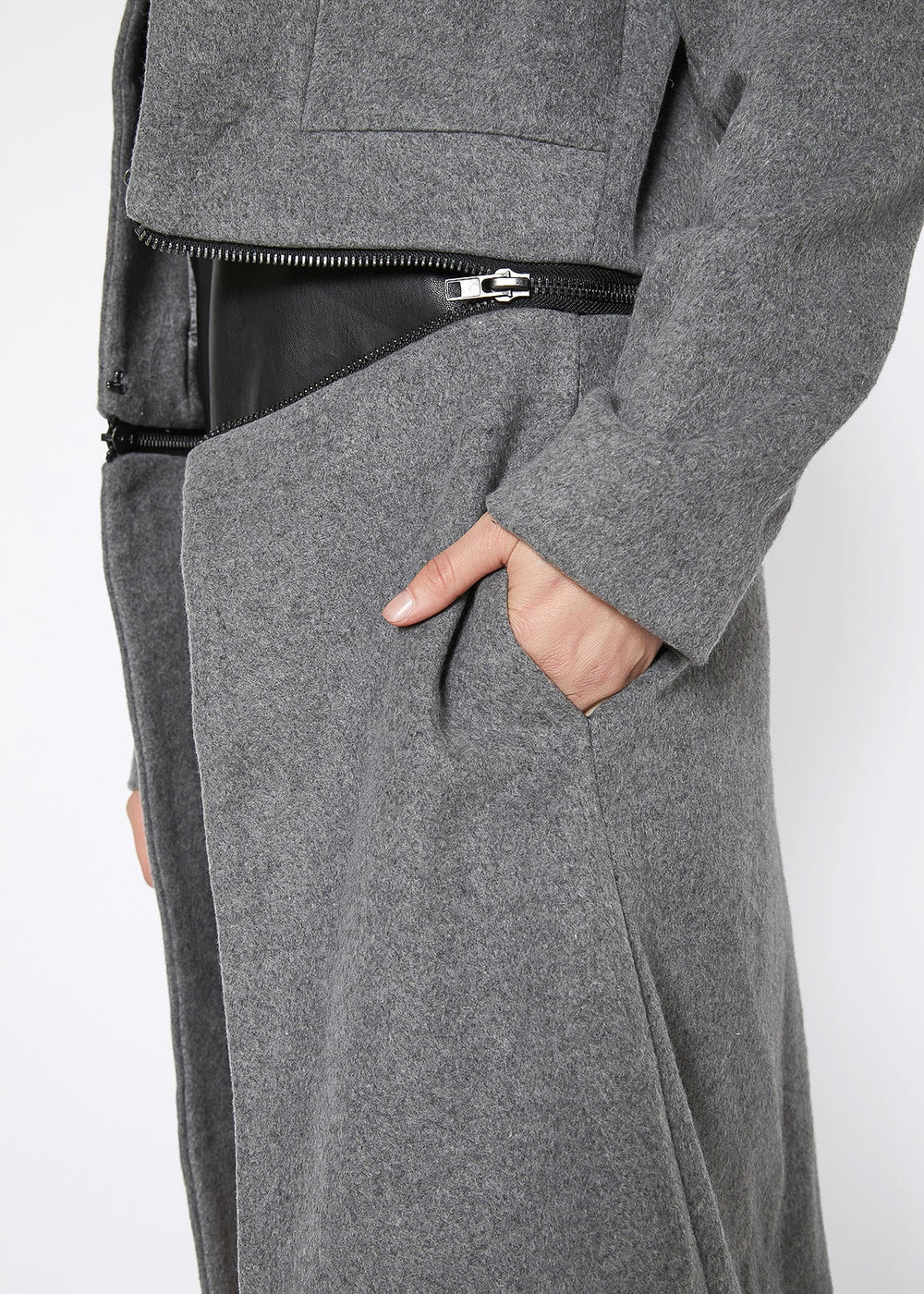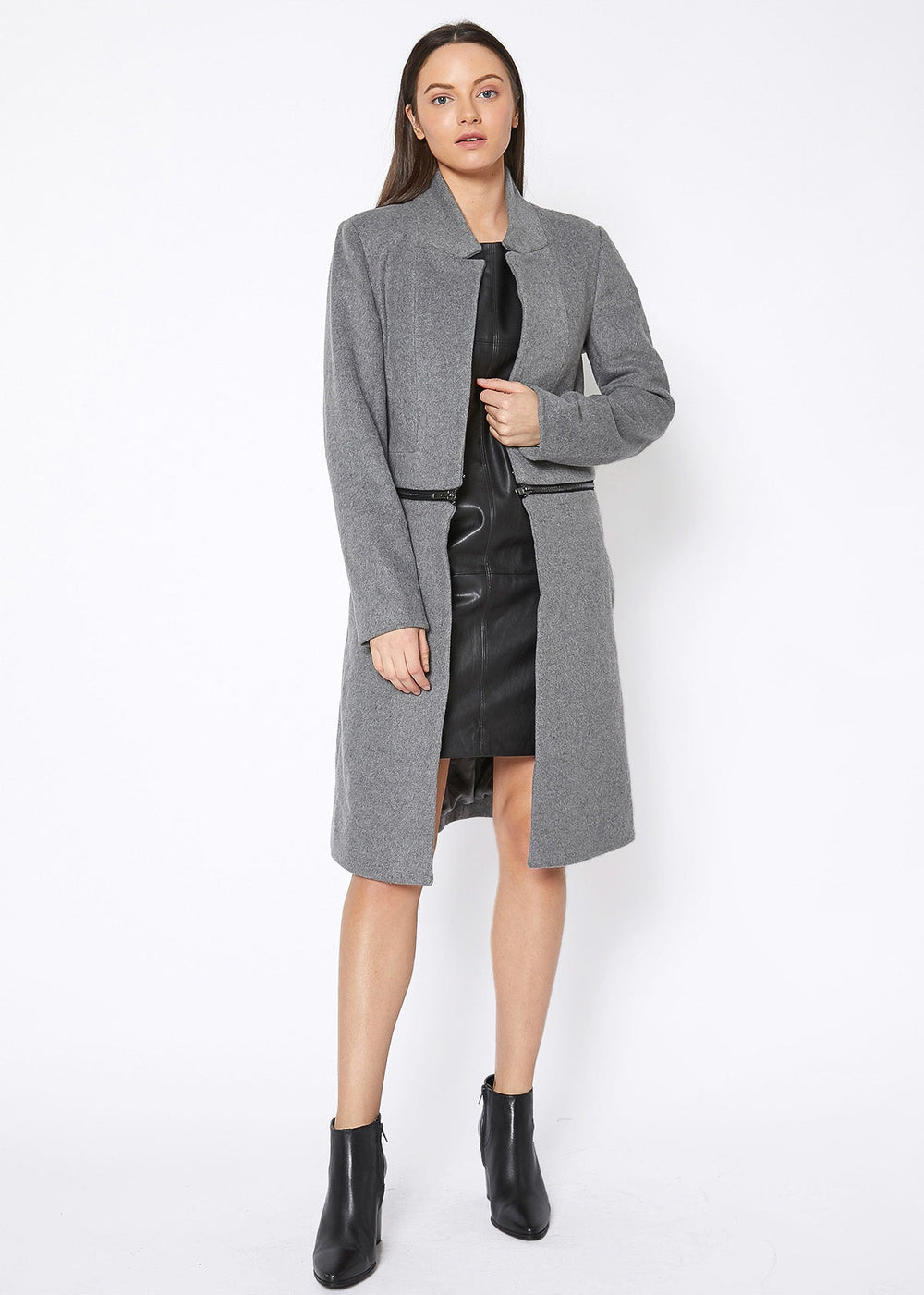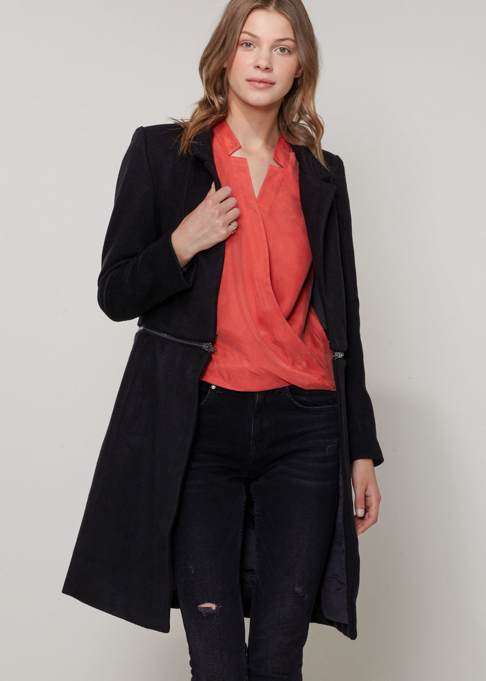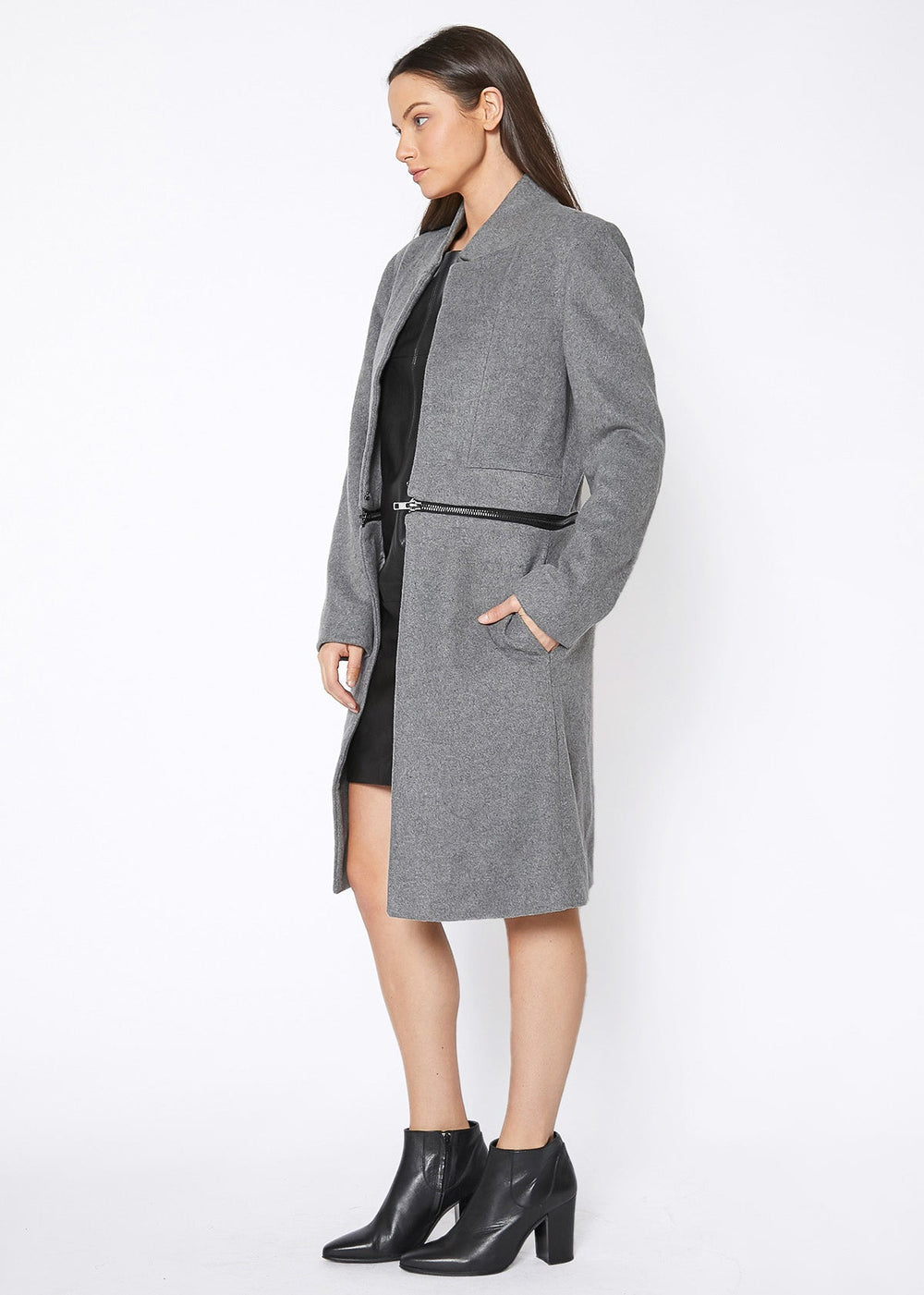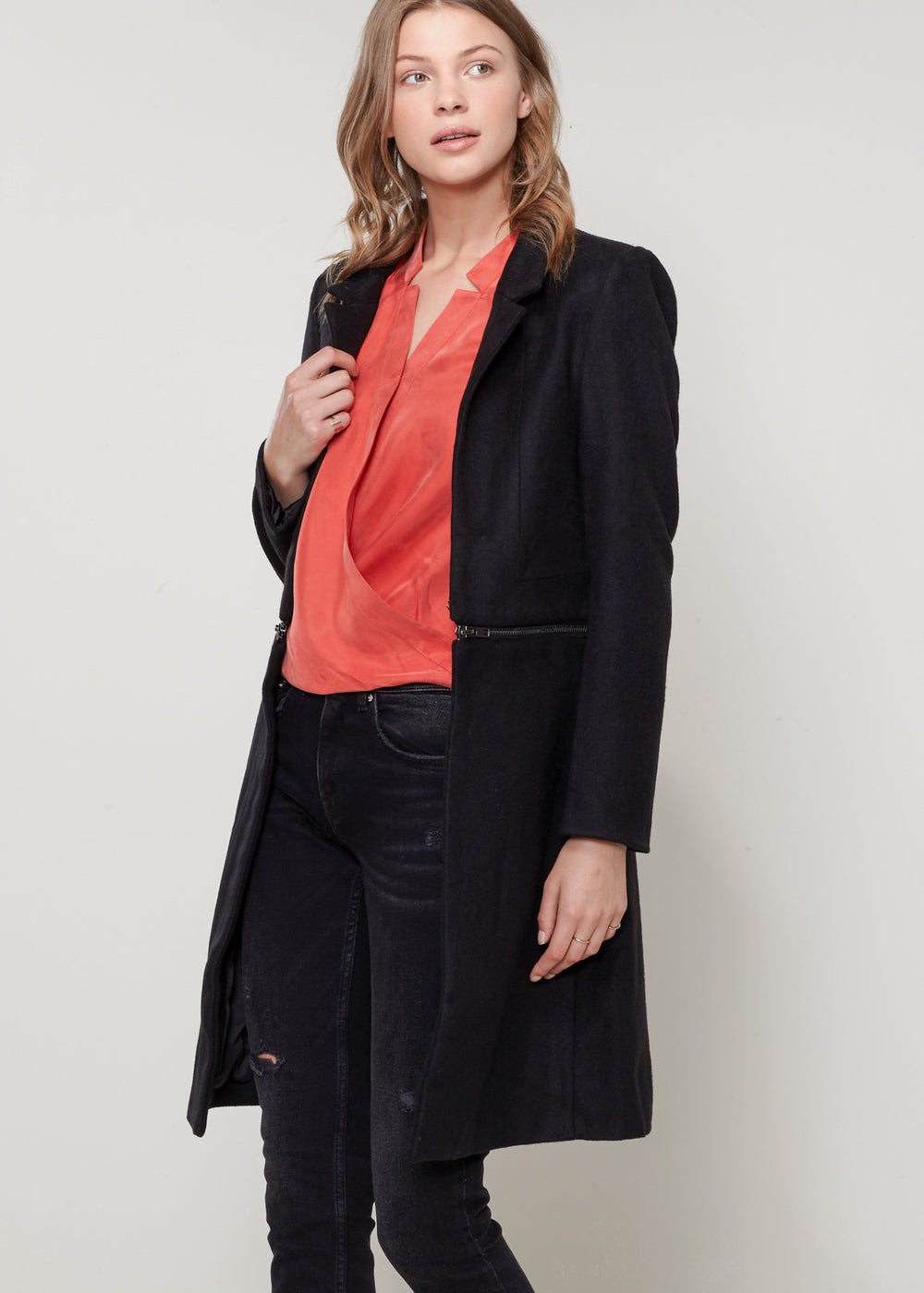 Women's wool-blended open front jacket that can be altered into two styles by zipping in